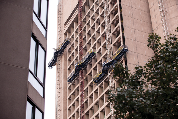 Built in 1973 as part of Boston’s iconic Christian Science Plaza, 177 Huntington Avenue was a bold modernist landmark designed by I. M. Pei.The exterior facade restoration of the historic Christian Science Tower, which Patriot completed in 2015, included one very significant challenge—providing safe and cost-effective access to the buildings façade, given the structural concrete latticework of columns and beams at the tower’s East and West elevations. Patriot utilized a combination of Mastclimber platforms and swing-stage access to allow inspections and repairs to be carried out safely and efficiently. Over the course of the project, all deteriorated exterior sealants were remediated, over 10,000 square feet of concrete repairs were performed and a waterproofing membrane was installed at the sky facing surfaces of the building’s unique latticework and structural elements. Patriot delivered the $4.5 million project on time and under budget within a nine-month period.